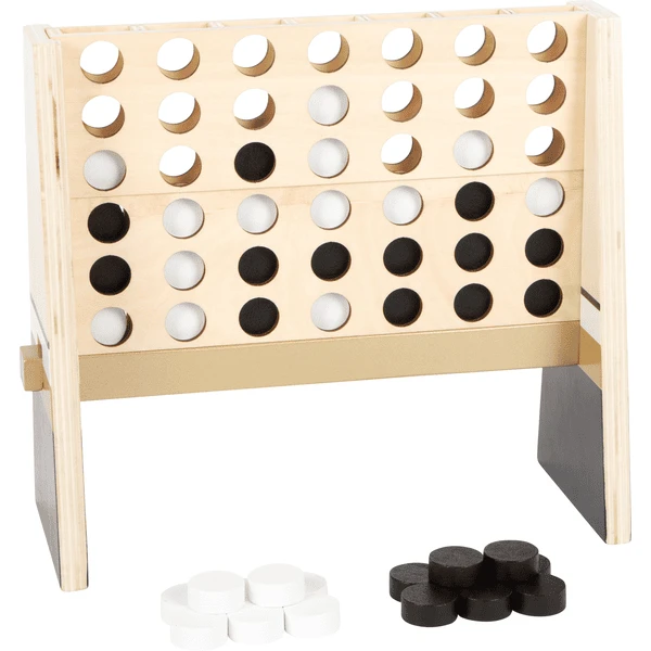 Weiß und viel sichtbarem Holz - Ziel des Spiels ist es, als Erster die Spielsteine aus Holz in eine
